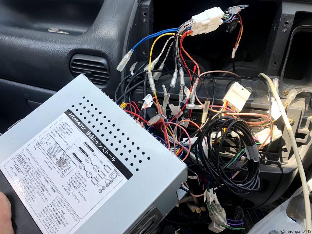 ナビはamazonで買ったandroidナビなんですが、いろいろ配線出てるので、フロントのLRの+-にそれぞれつなぎました。繋いだら押し込んで完成。