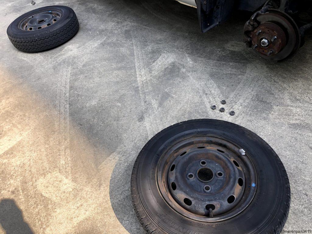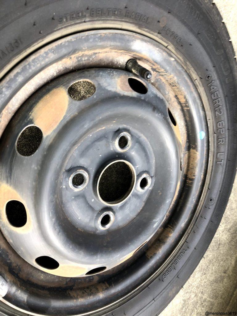 鉄のホイールの錆が気持ち悪いので塗りました。