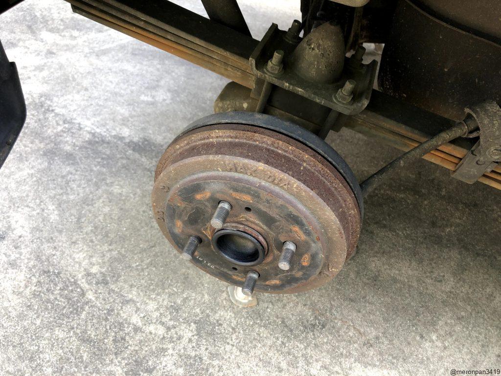 で、ハズしたところがこんな感じ。インパクトドライバーとソケットでばばっとはずしました。ドリフトするわけじゃないので、大丈夫。